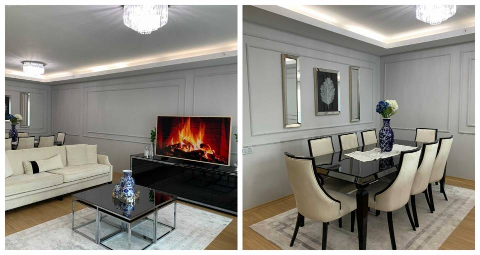 Ortamdaki uyum ve keyif seviyesini maksimum tutmak isteyen Taha Bey zeminde laminant görünümlü seranik kullanmış. Son olarak da altın renkli aksesuarlarla alanın albenisini arttırmış.