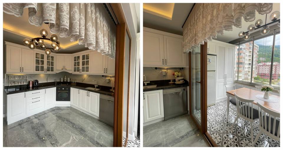 İlk etapta eskiden beyaz olan dolaplar zıt kutba geçirilmiş. Yeni halinde siyaha dönen dolaplar için uygun kulplar da sonra yerini almış.