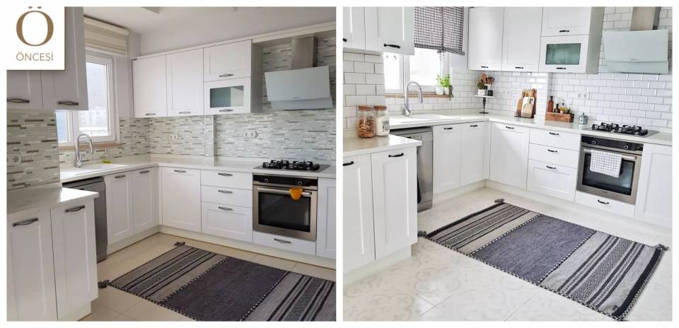 Mutfağa uygun seçilen kilim ve birkaç aksesuar da yerini alınca abartıdan uzak şekilde şık olabilen bir mutfak ortaya çıkmış.
