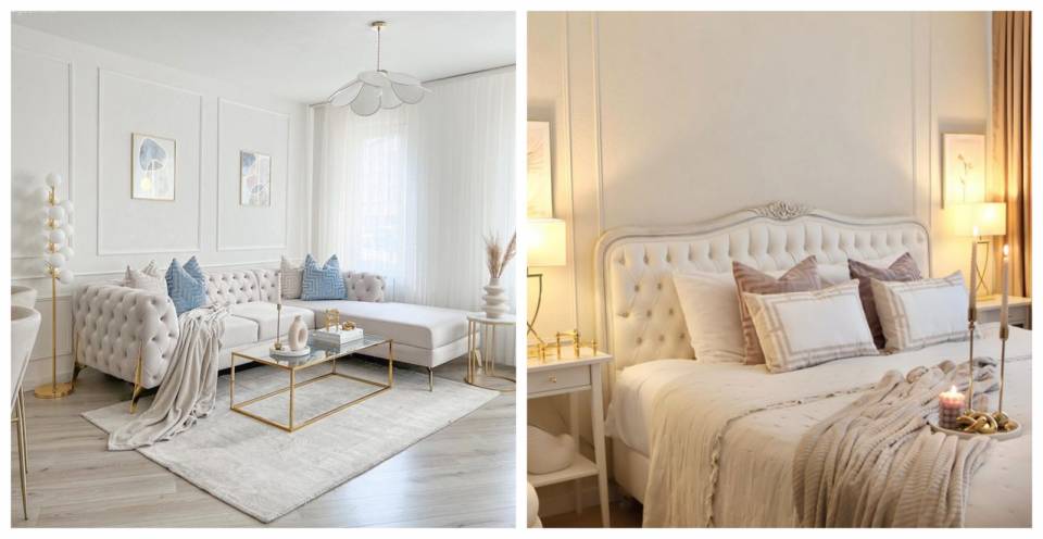 Dekorun baskın rengi olarak vizon gri kullanılmış. Onun çok sevdiği beyaz ve siyah da geçişler için yerini almış.