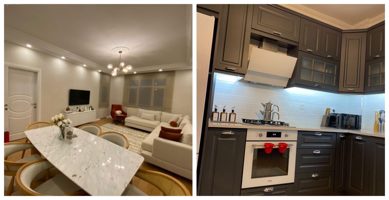 Evde değişim isteyen mutfak ve banyoya sıra geldiğinde bu alanlar sıfırdan yapılmış: Eski hallerideki her şey gitmiş. Yerine yeni dolap ve tamamlayıcılar gelmiş.