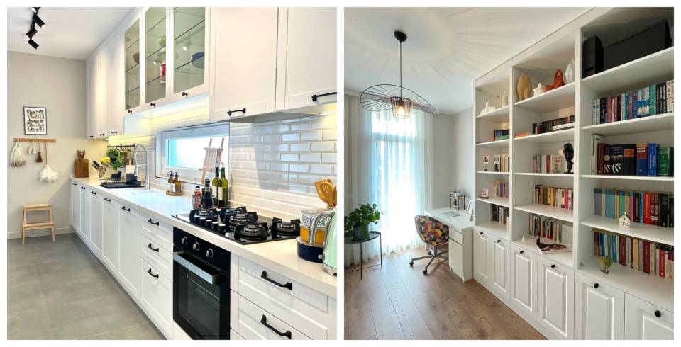 Dekorun hakim rengi olan beyaz mutfakta tüm dolapları kuşatmış. Diğer alanlarda da iç mekan detaylarında ve büyük parçalarda belirmiş.