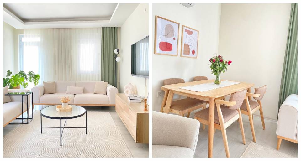 1 yıllık evli olan ev sahibimiz için dekorasyon süreci sadelik arayışı ile başlamış. Bunun yanına biraz sıcaklık da eklenince İskandinav tarz kendiliğinden şekillenmiş