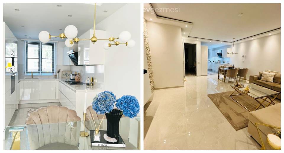 1+1 plana sahip olan bu evde ortam işlevsel ve keyifli şekilde dekore edilmiş.