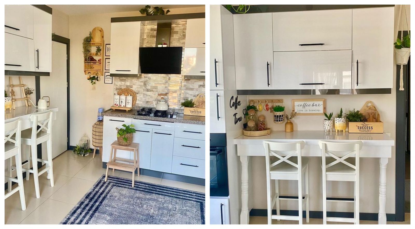 Küçük alanda keyifli ve kullanışlı bir mutfak oluşturan ev sahibimiz ortamı iki farklı tarza göre dekore etmiş.