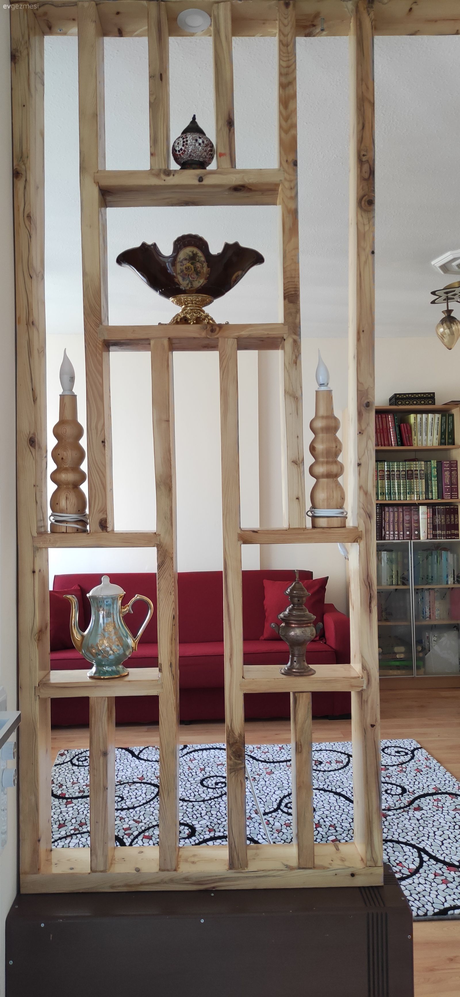 İkili tablo ortamın estetik algısını ortaya çıkarmış. Boy aynasını şömine arkasına saklayan ev sahibimiz hint penceresi görüntüsüyle farklı lezzetleri birbirine katmış.