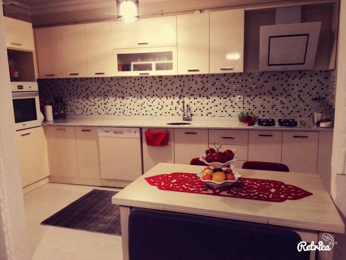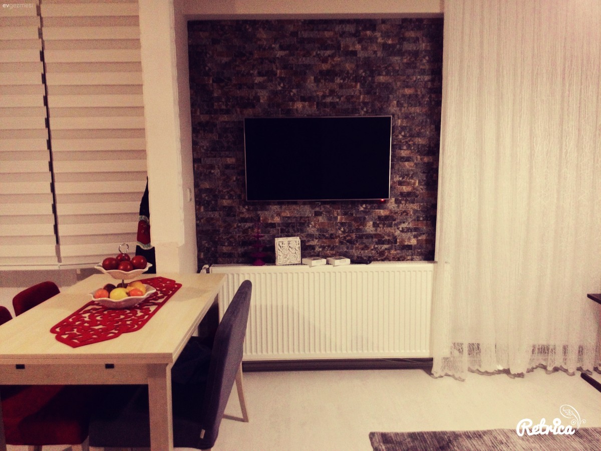 Eviniz çok hos ve düzenli çok beğendim Güle güle oturun yine bu sitede bundan 1 hafta evvel sanırım bir ev paylaşılmisti mutfak arası fayans aynalı mozaik di çok beğenmistim. Dusunebilirsiniz. Duvara gelince sadeligini hiç bozmayin derim bir duvar kagidiyla da çok şık durabilir.