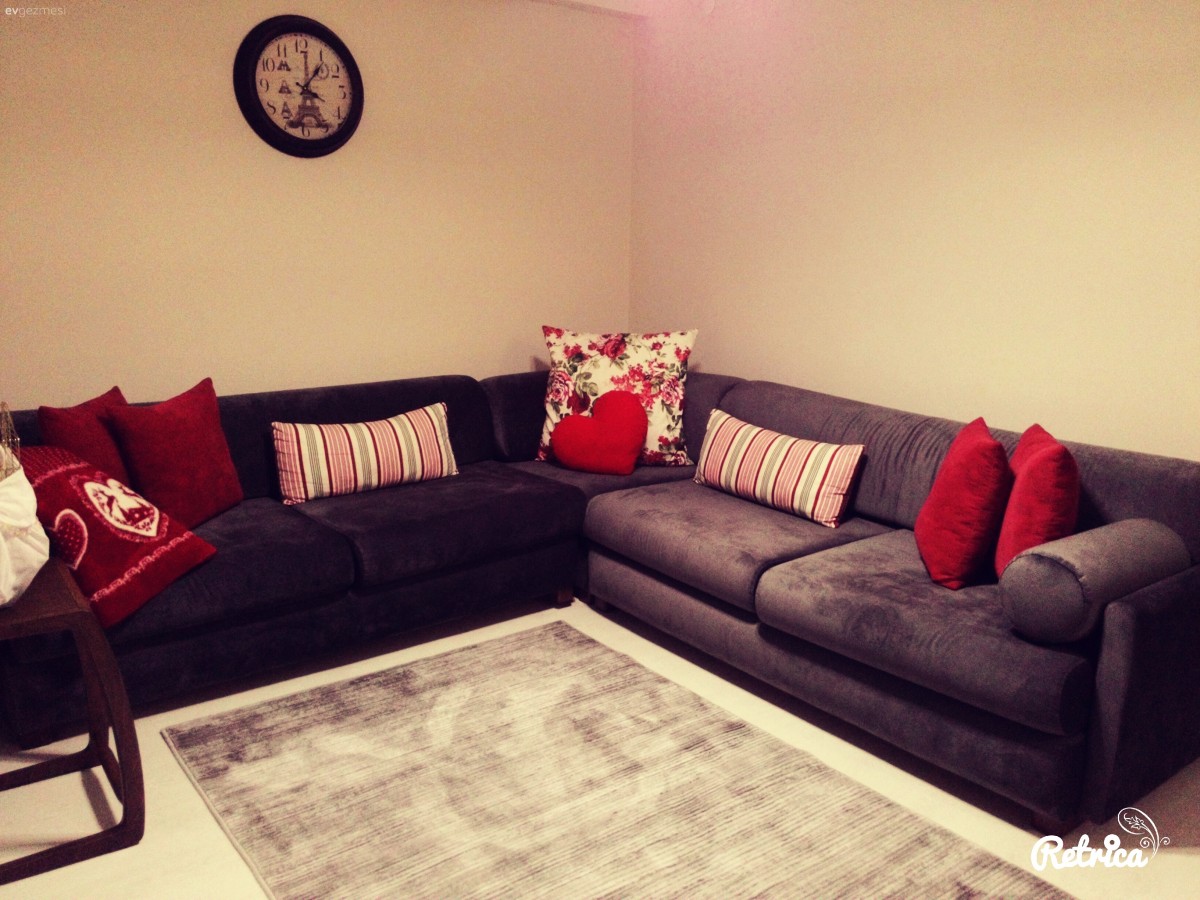 kırmıyı pek sevmıyorum ama bordürlerde kırmızı kullanıldığı için aksesuarlarımı kırmızı seçtim size sorum bordürleri aynalı bordürlerle değiştirsem olrmu ve otrma oda duvarlarına büyük tek tablomu önerirsiniz yoksa saatin etraıfına küçük küçük tablolarmı çok teşekkr ederim