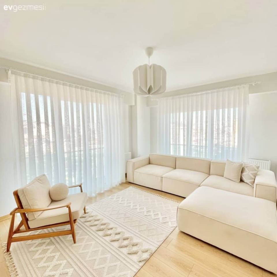 Açık renk dolapların kullanıldığı bu alanda ilk etapta ferahlık sağlanmış. Sıcak görünüm için de hasırlardan destek alınmış.