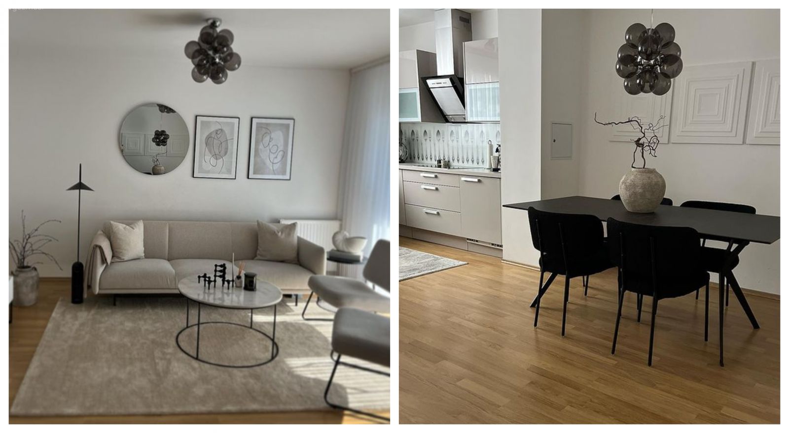 Açık konsept salon ve mutfağında bizi ağırlayan ev sahibimiz, bu bölümde açık renkleri tercih etmiş.