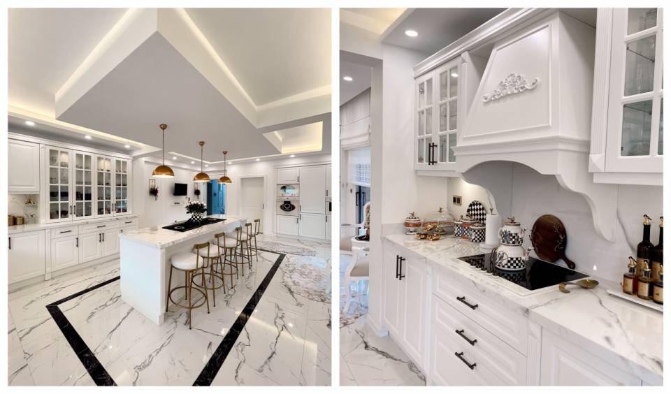 Mutfak, Gri, Beyaz, Country, Mutfak yarım adası, U-tipi mutfak, Mutfak tezgahı, Mutfak tezgah arası, Tezgah arası seramik, Davlumbaz, Mutfak aksesuarları, Mutfak zemin seramikleri, Led aydınlatma, Aydınlatma, Mutfak Avize Modelleri, Ankastre