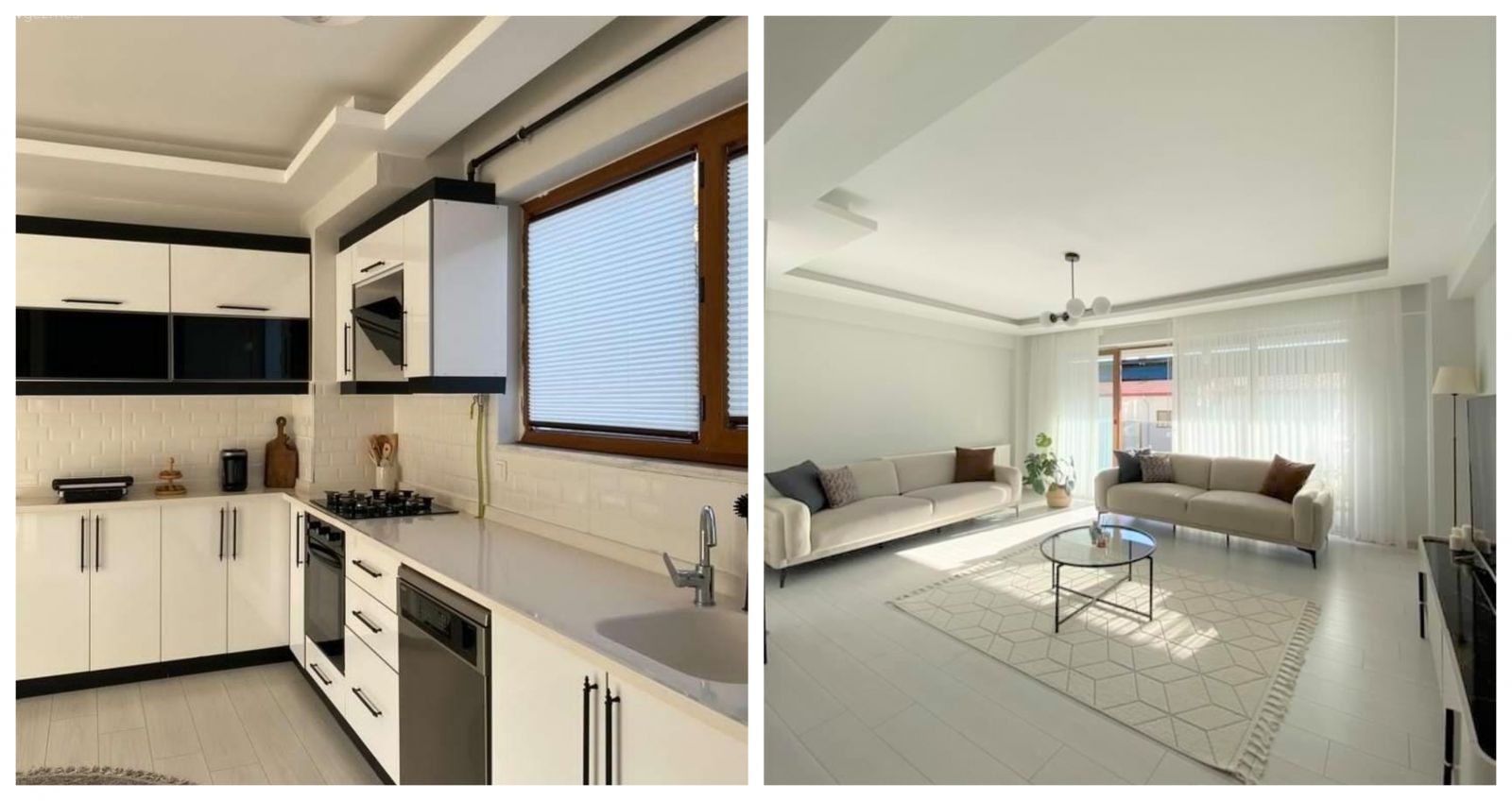 Salondan sonra bizi karşılayan mutfakta da benzer ambiyans karşımızda: Sade ve ferah!