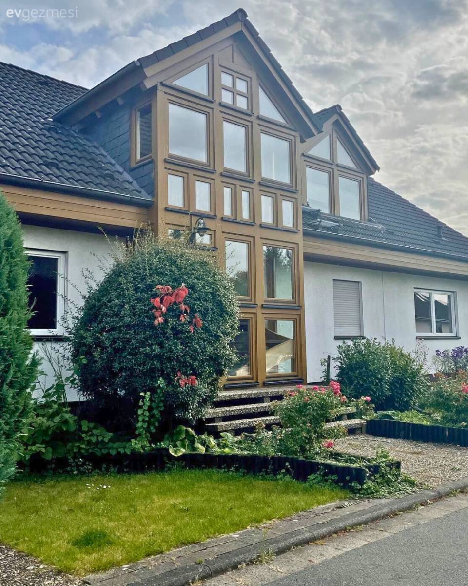 Evin her cephesinde aydınlık sağlama amacıyla pencereler kullanılmış. Bu pencerelerde kullanılan mavi panjurlar da ortamın albenisini arttırmış.