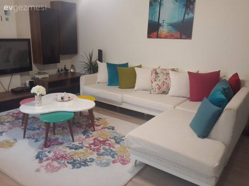 Çok cici, sadece televizyonun yeri değişmeli. Kırlentlere ve mumluğa bayıldım ????