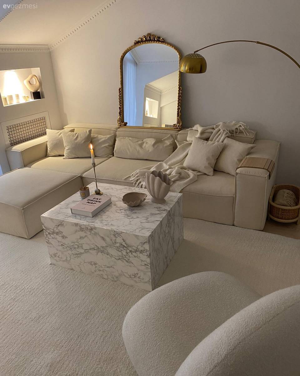 Parlak yüzeyler, sıcak ambiyans ve sonsuz beyaz... Şimdi konuk olacağımız dekorun özeti yapılacak olsa böyle olurdu!