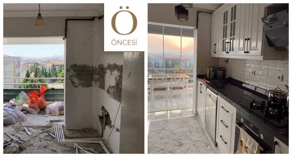 İlk etapta mutfağına yönelen ev sahibimiz burada var olan materyallere çok müdahale etmeden değişiklikler yapmış.