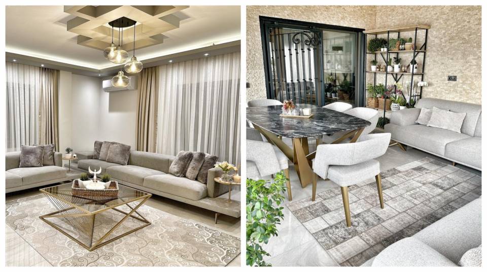 Evin salonunda değiştirmediği tek yer kalmamış: Parkelerden duvarlara kadar her şey yeni görünümde sunulmuş.