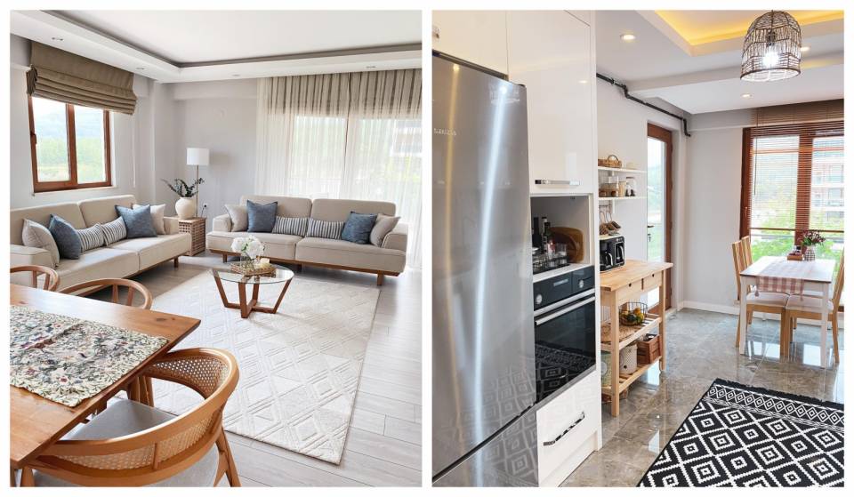 Kahverengi dolapların yer aldığı eski mutfak gitmiş, yerine beyaz dolapların olduğu mutfak gelmiş.