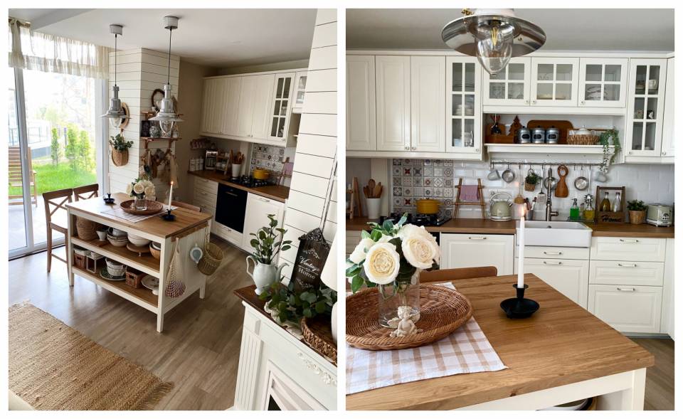 Salondan sonra bizi karşılayan mutfakta modern rustik tarza başvurulmuş. Daha özgür bir ruha sahip olan bu bölüm üçüncü dalga bir kahveci tadında olmuş.