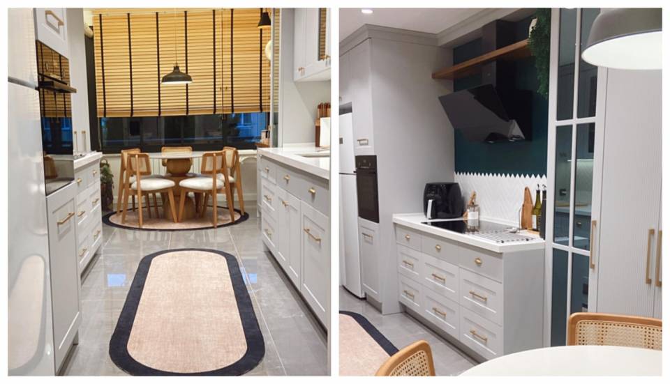 Alana bohem hava katan hasır avizenin de eklenmesiyle mutfağın enerjisi adeta tavan yapmış.