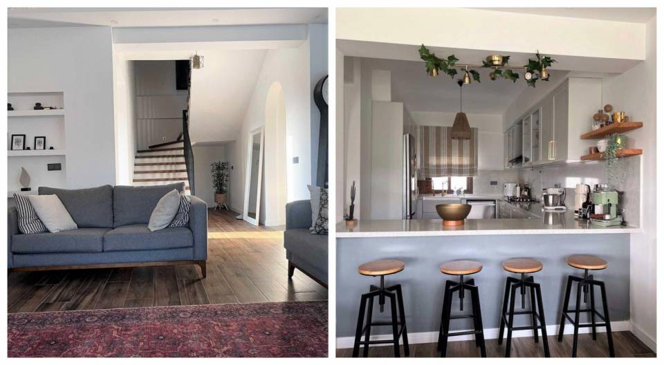 Elif Hanım, ikisinin arasındaki duvarı kaldırmış önce. Daha sonra da genişleyen alanı yeni parçalarla donatmış.