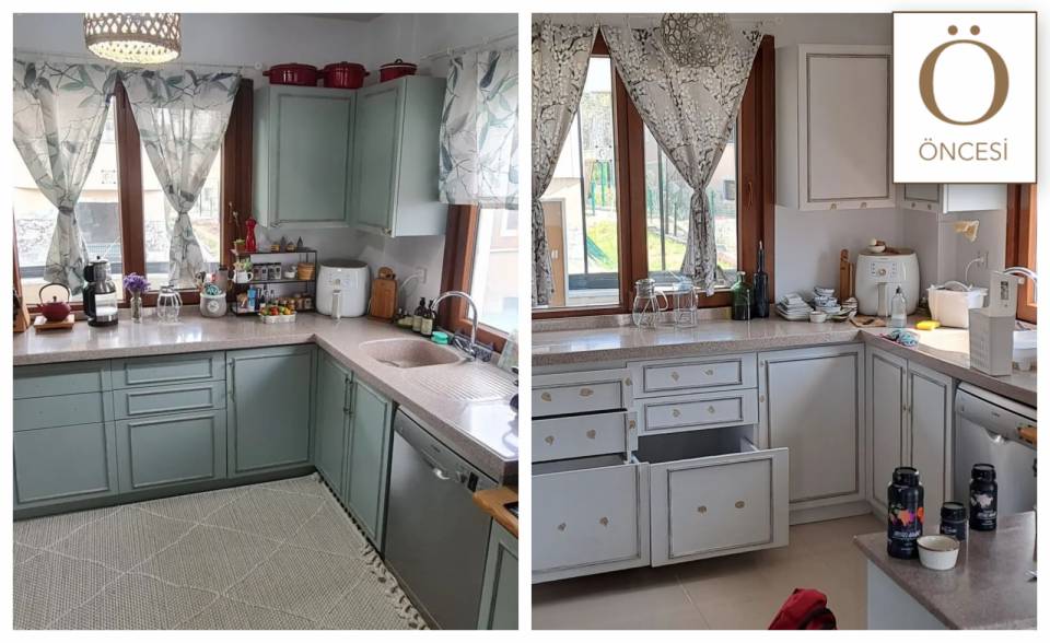 Bunun için yemek ve oturma bölümlerinin kendi içinde ayrı bir alanmış gibi durması sağlandı.
