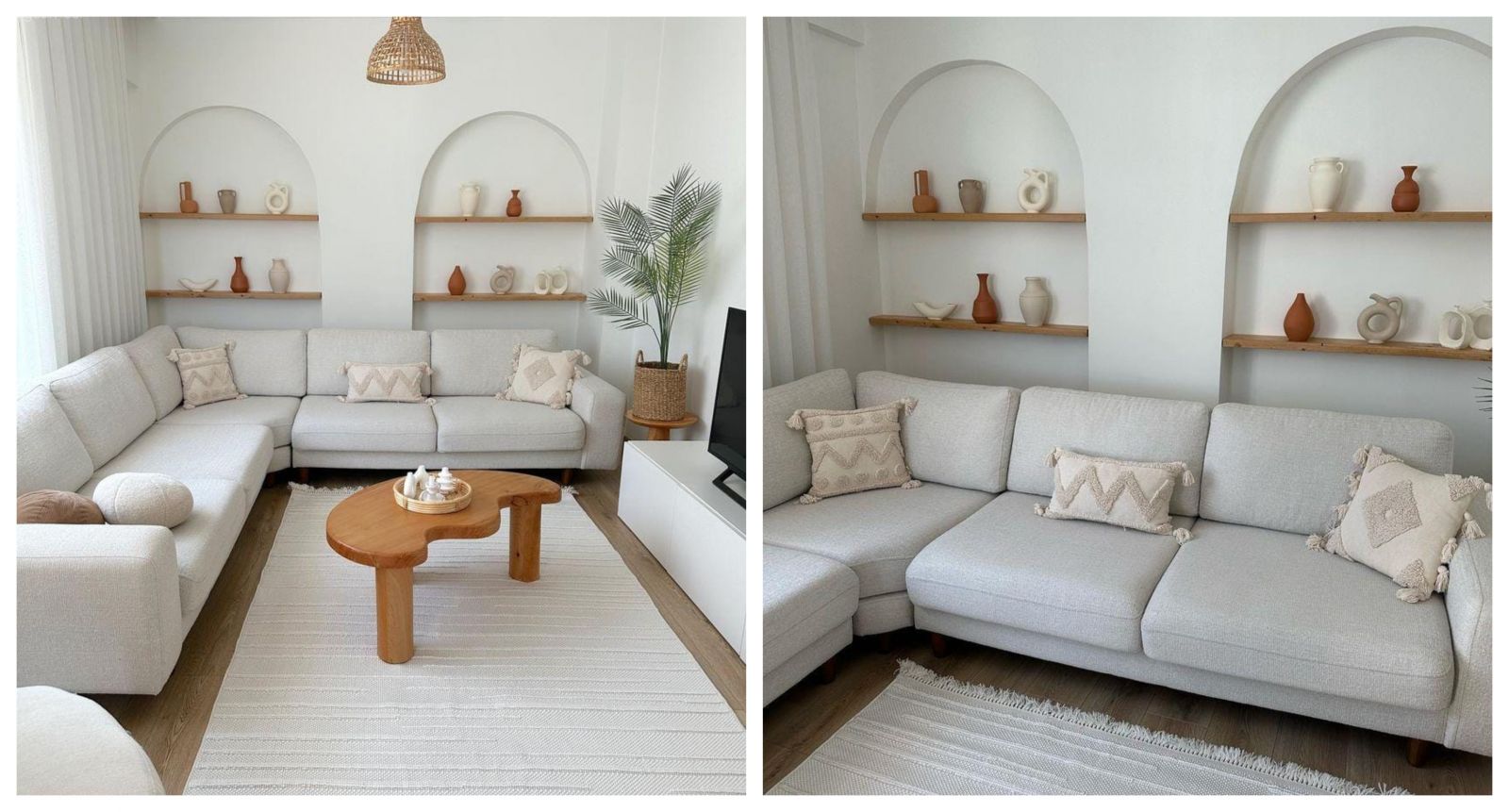 Salon, İskandinav, Beyaz, Bej, Ahşap Mobilya, Köşe koltuk, Koltuk takımı, Duvar Nişleri, Saksı, Ev bitkisi, Orta sehpa, Sehpa, Halı, Salon halısı, Hasır avize, Kırlent, Ev tekstili, Berjer, Tv ünitesi, Tv ünitesi aksesuarları, Ev Aksesuar, Dekoratif Objeler, Duvar rafı, Duvar dekorasyonu