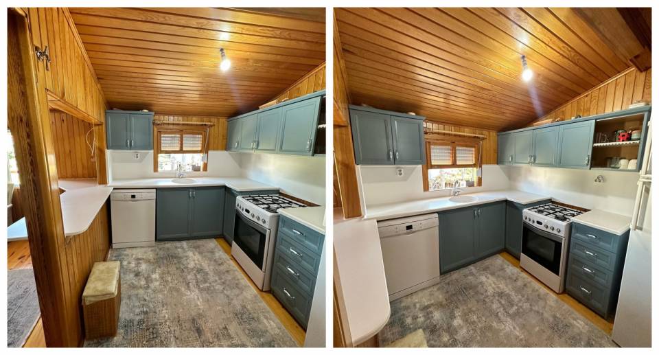 Salondan bağımsız gibi duran bu açık mutfak, evin ferahlığına ve doğallığına yakışır şekilde! Mutfak için tasarlanan işlevsel dolaplara da ayrıca dikkat!