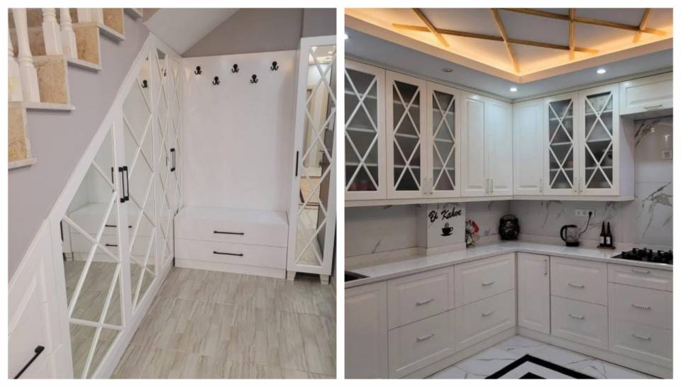 Ev sahibi de çözüm olarak tüm dolapları beyaza boyamaya karar vermiş. Cadence hibrit multisurface pak beyaz rengi ile bütün dolaplar boyanmış.