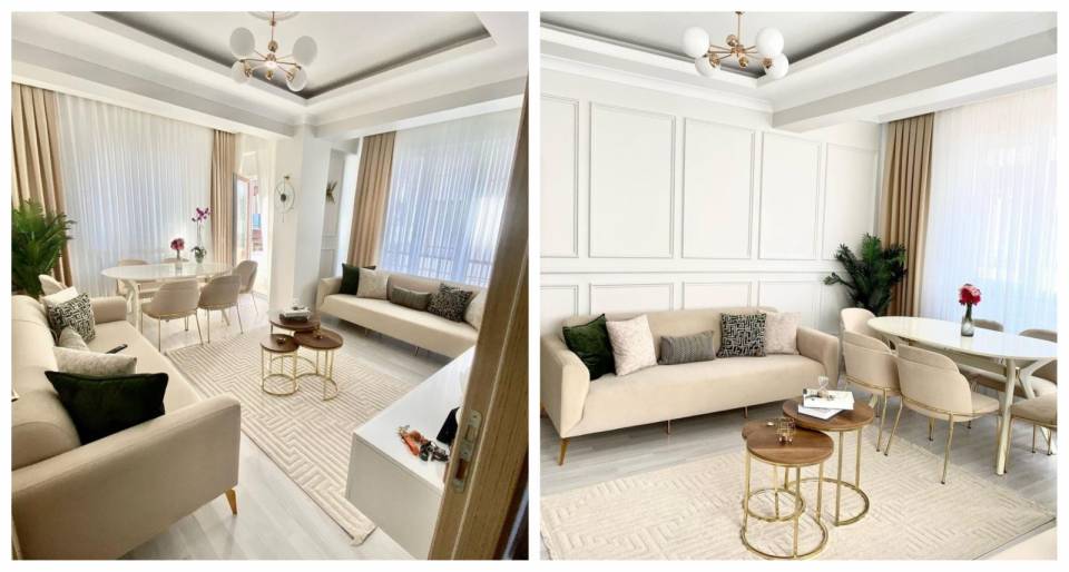 Çıta ile zenginleştirilen duvarlar dekorun genel renk paletine uygun olmuş: Nötrleri destekleyen toprak tonları...