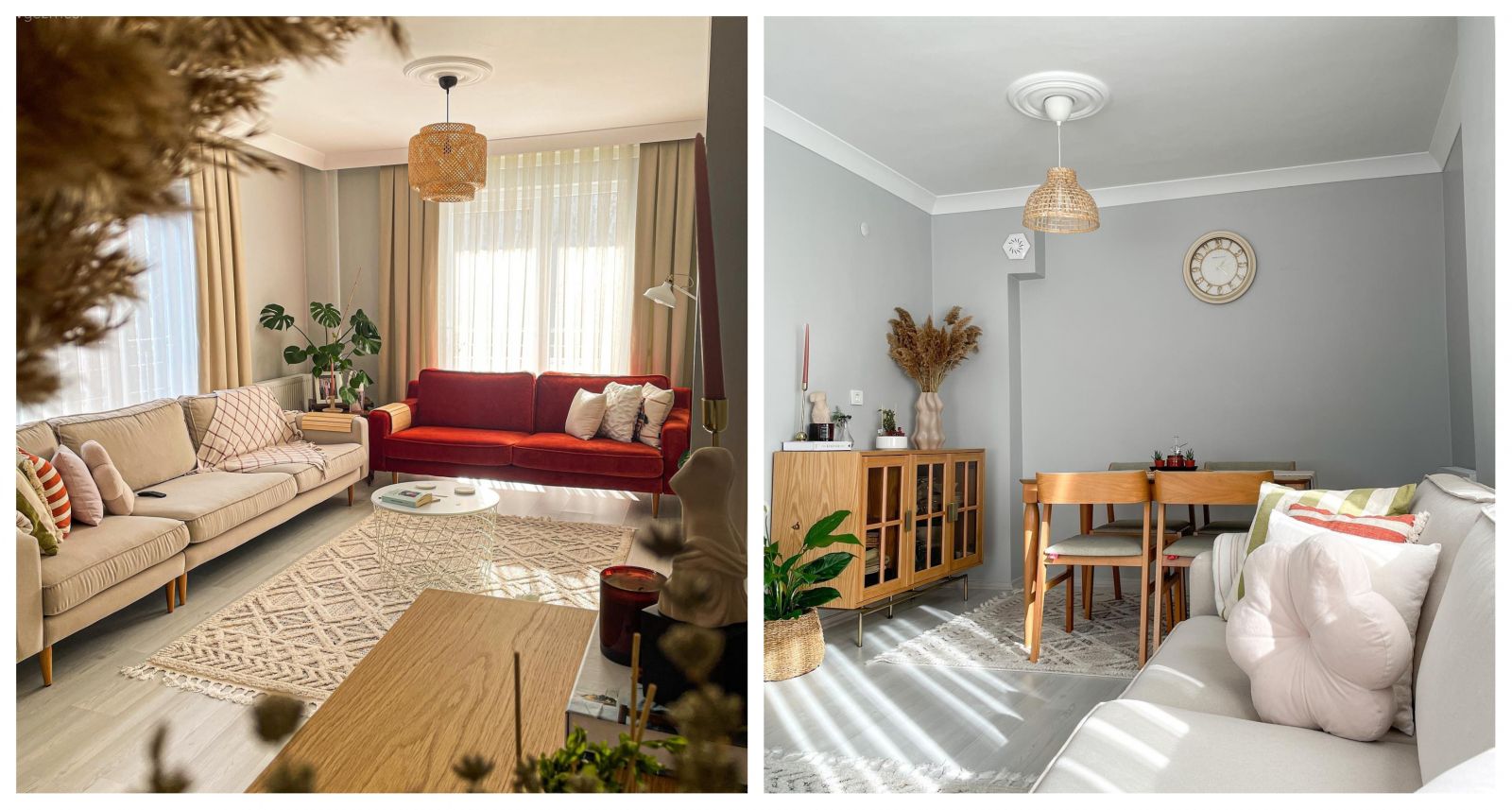 Ahşap tv ünitesi, hasır avize ve bitkilerle son dokunuşlarını yapan ev sahibimiz, istediği gibi bir ortama kavuşmuş.
