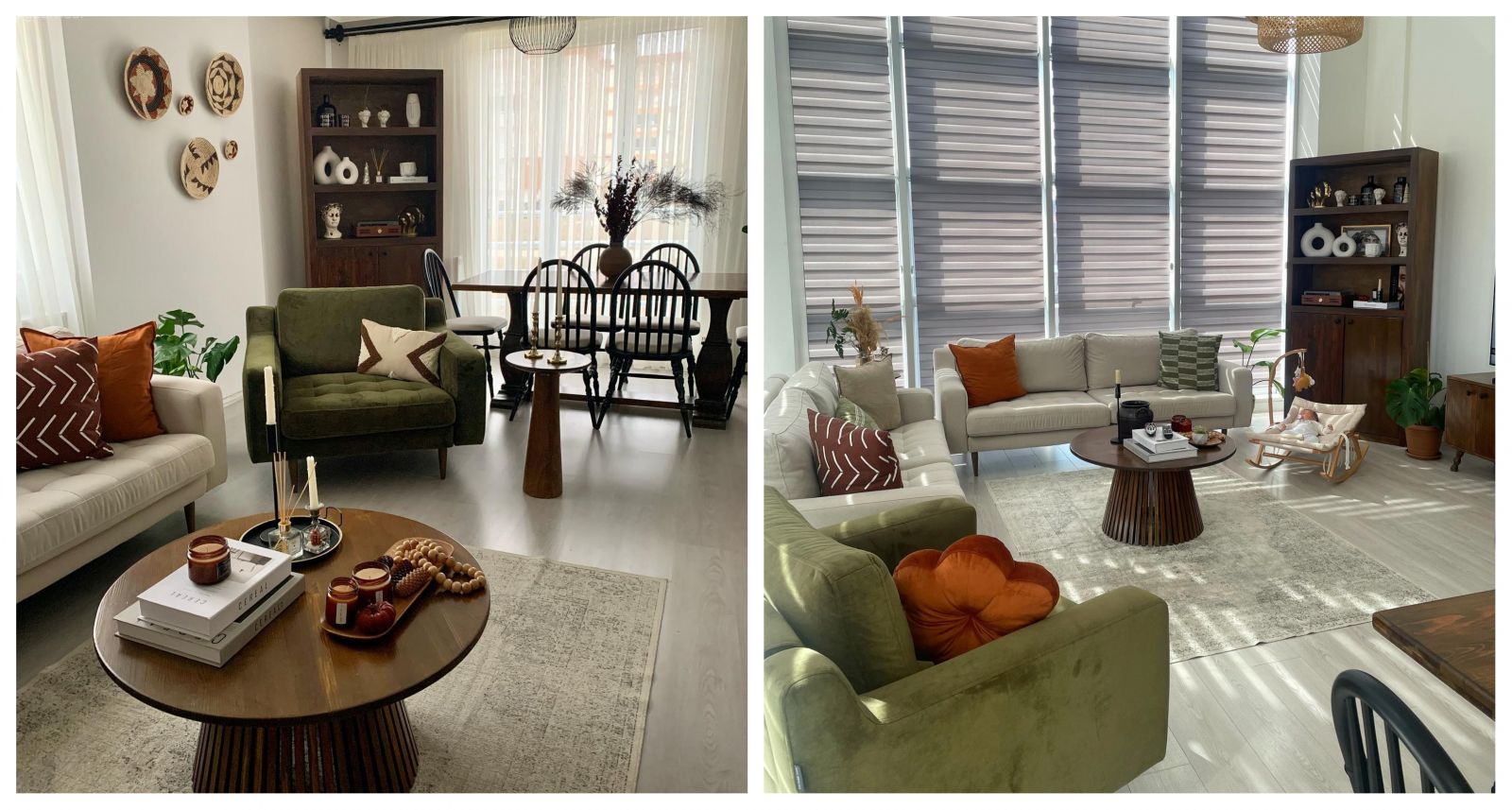 Ev sahibimiz için dekorasyonda olmazsa olmazların başında ahşaplar geliyor. Bu yüzden evinde ahşapları eksik etmemiş.