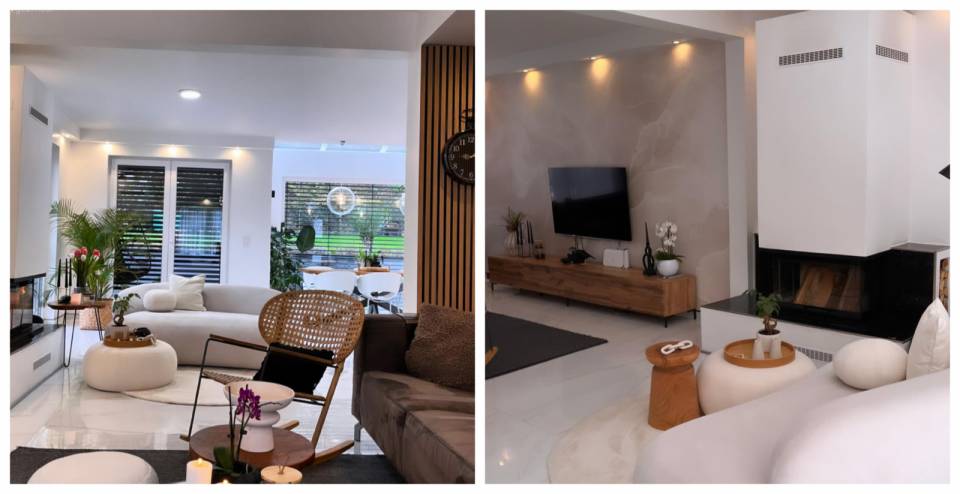 Salon, Modern, İskandinav, Köşe koltuk, Koltuk takımı, Duvar çıtalama, Yuvarlak sehpa, Sehpa, Halı, Salon halısı, Tül perde, Perde, Avize, Aydınlatma, Parke, Vazo, Ev Aksesuar, Yapay çiçekler, Kırlent, Ev tekstili, Tv ünitesi, Tv ünitesi aksesuarları, Puf