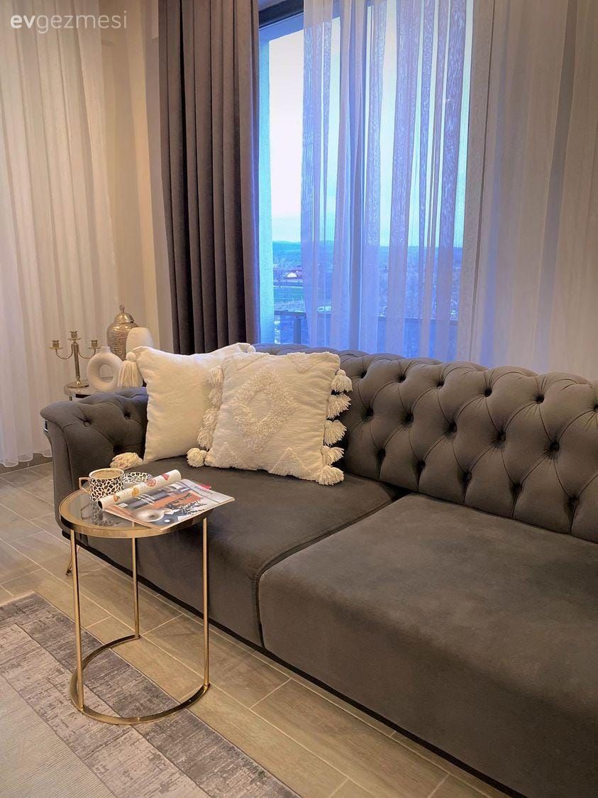 Oturma odası tamamen keyif alanına dönüştürülmüş: Günlük kullanıma uygun, konforlu ve ferah!