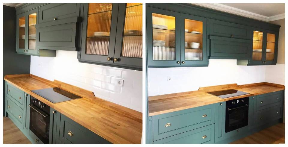 Antrasit ve ahşabın buluştuğu mutfakta, dolapların antrasit tarafı moderne hitap etmiş. Ahşap ise başlı başına rustik kalmış!