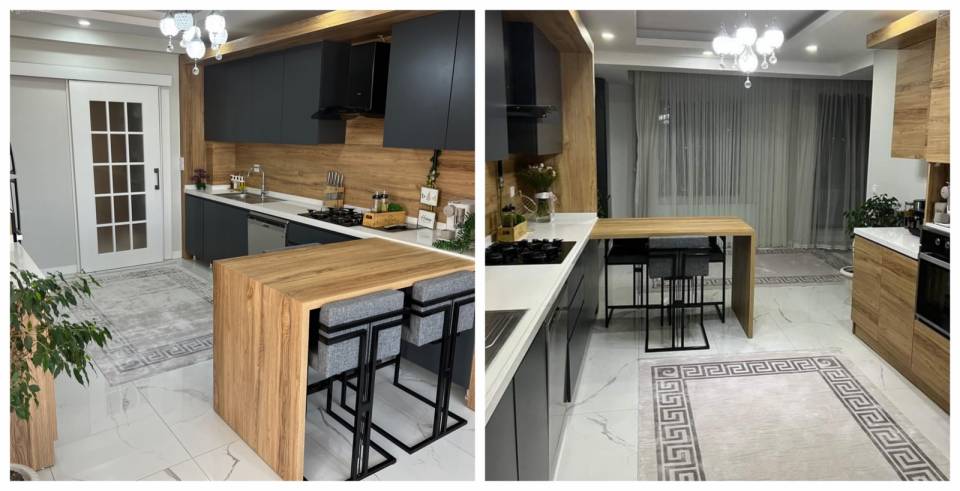 İlk etapta mutfak ile başlayan süreçte neredeyse her köşe değişmiş: Dolaplar, seramikler, tezgah...