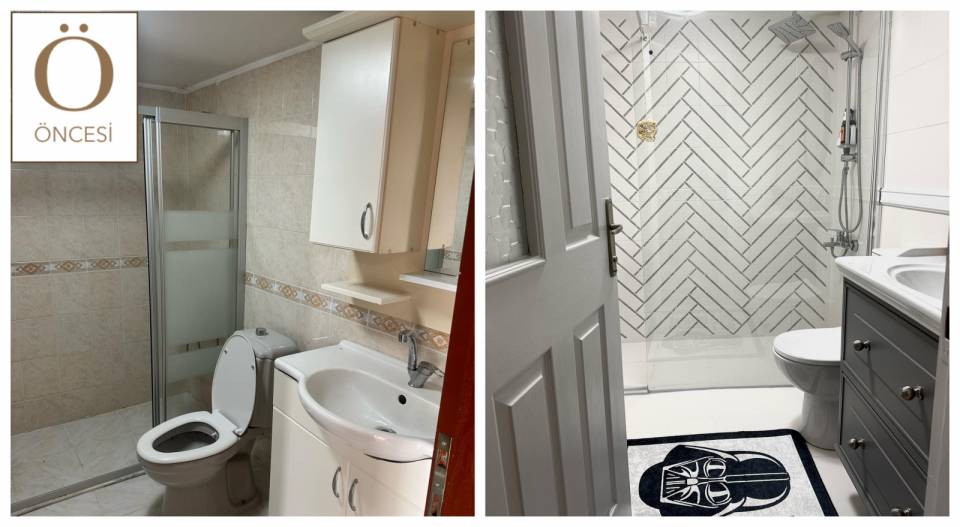 Uyumlu bir görünümden yana olan Elif Hanım, iki rengi de eşit dağıtmış. Ortama doğallık katacak materyalleri de unutmamış.