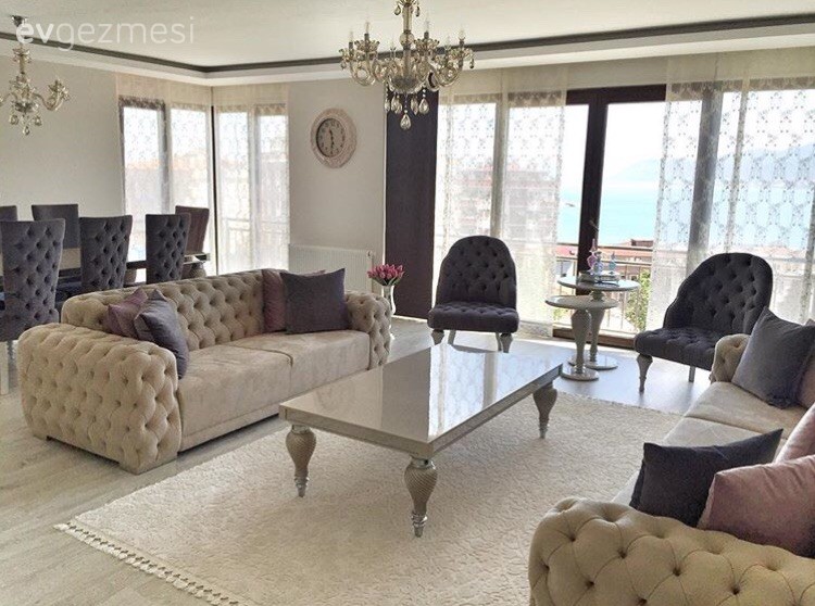 Sade ve guzel ev ama modernlik dersek eger salondaki perde cok basit kalmis