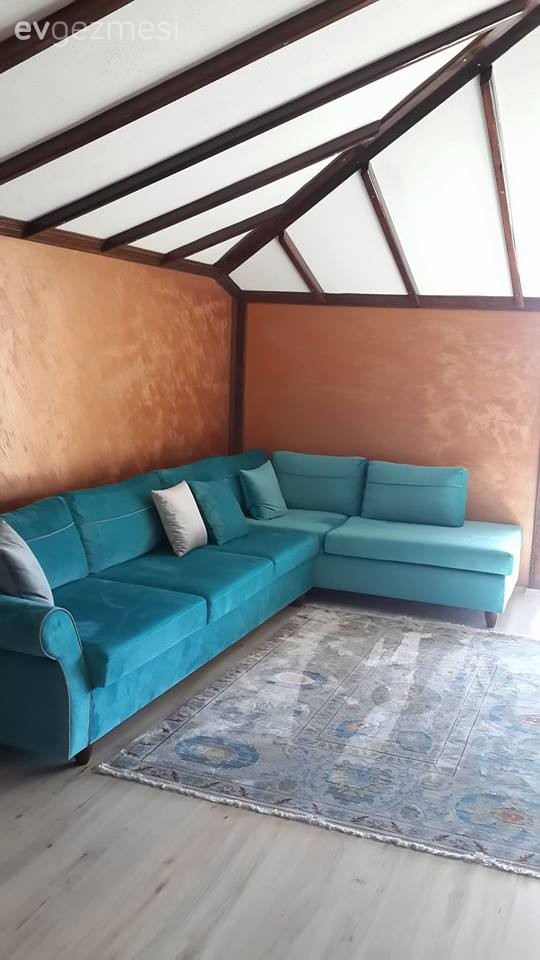 "Bir başladıktan sonra durmak çok zor, her bir yandan fikirler yağıyor üzerinize.. Bir oturma grubu düşüncesiyle başladık; sonuçta neler oldu." diyor gülerek. Projenin tamamı eşi ve kendisinin emeği..