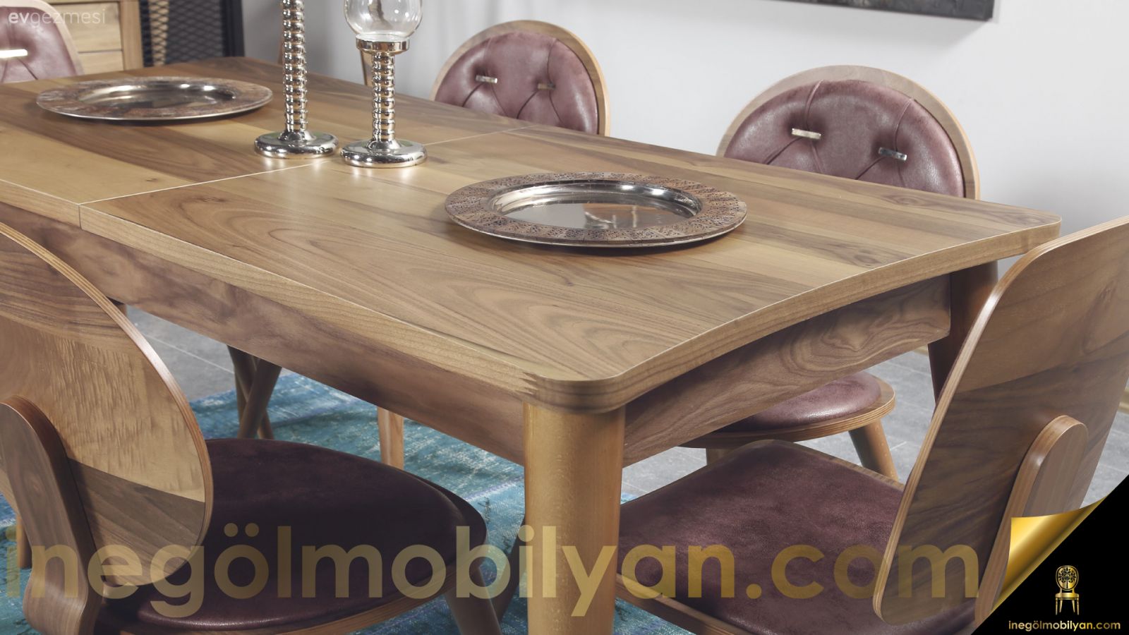 Bentley Yemek Odası içerisinde 6 adet sandalye, 1 adet konsol ve 1 adet masa bulunuyor. Ahşap ceviz olan bu ürün en çok beğenilen ürünler arasında. Eğer evinizi tam takım olarak dizayn etmek istiyorsanız ürünün yatak odası ve TV ünitesi modellerini de inceleyebilirsiniz.