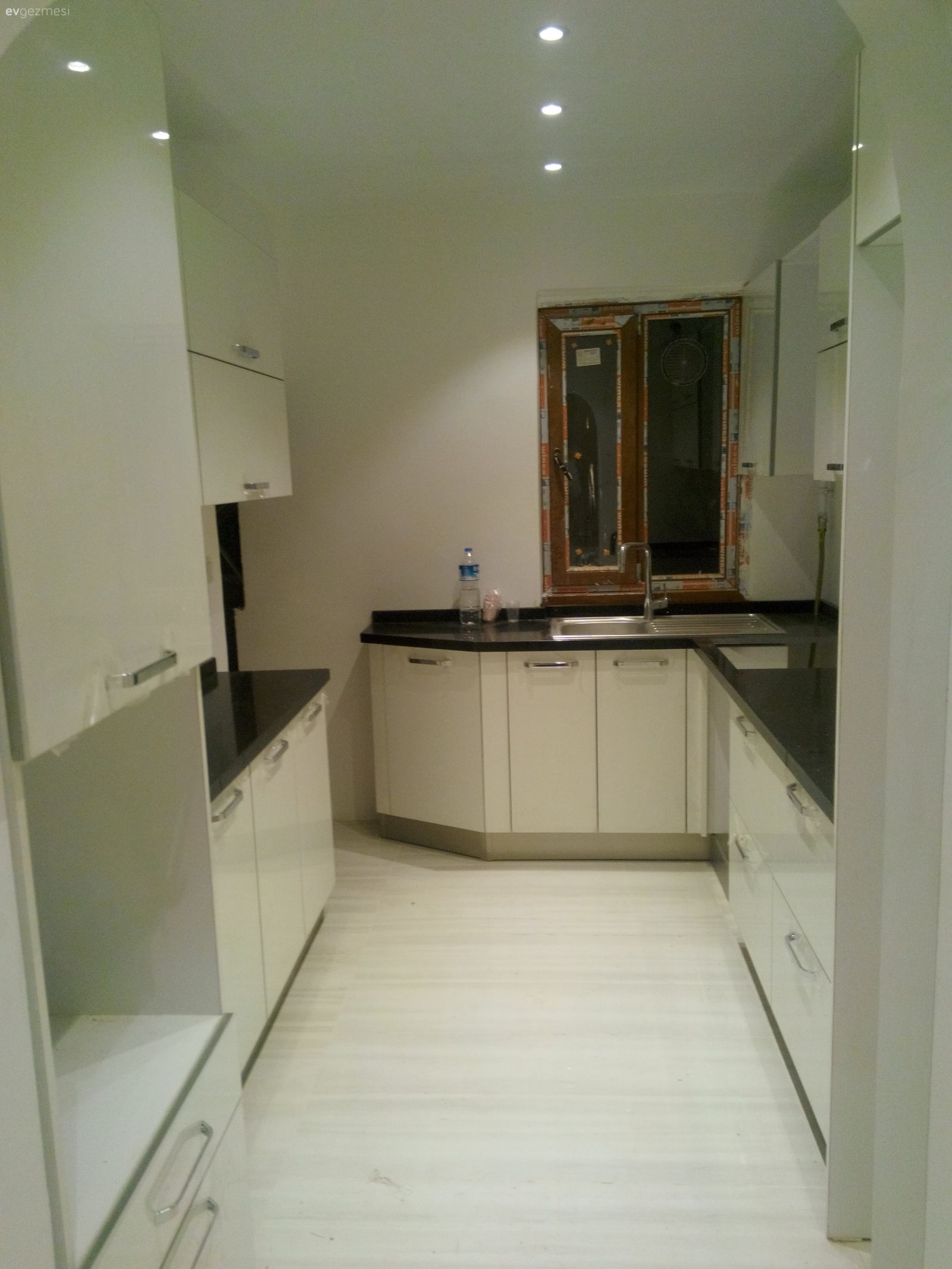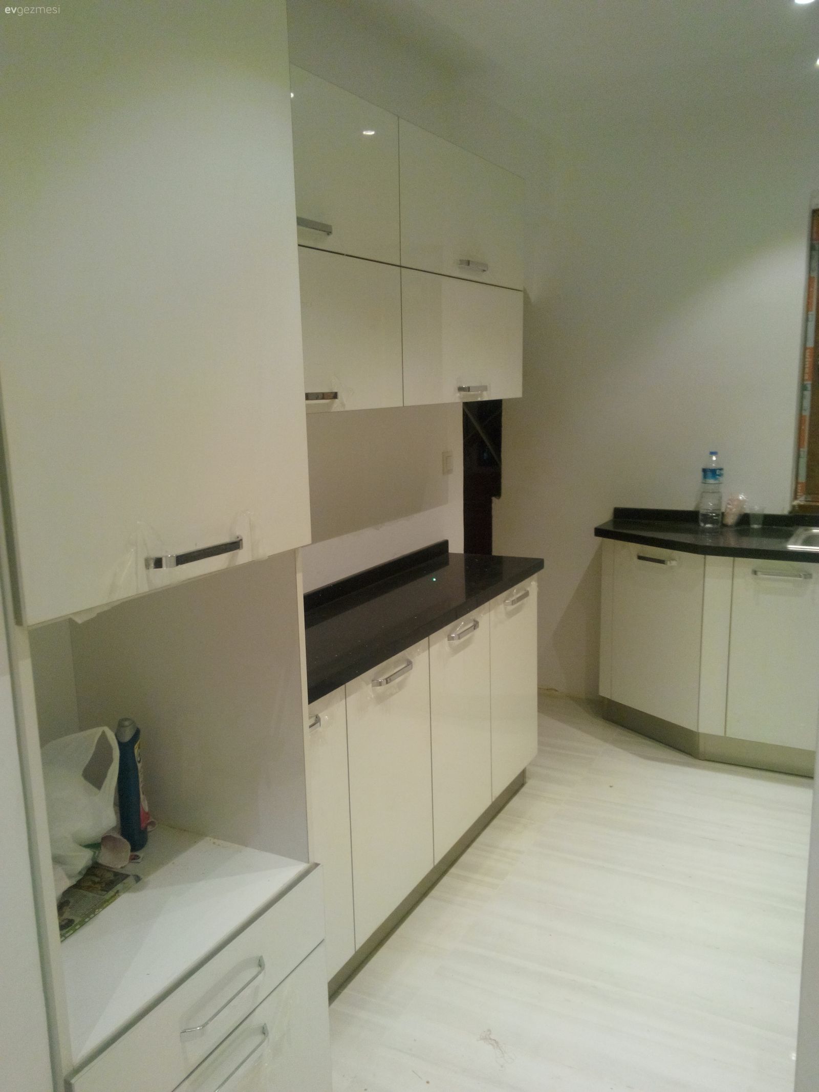 Beyaz renkli acrylic kapaklı ankastre mutfak dolabı