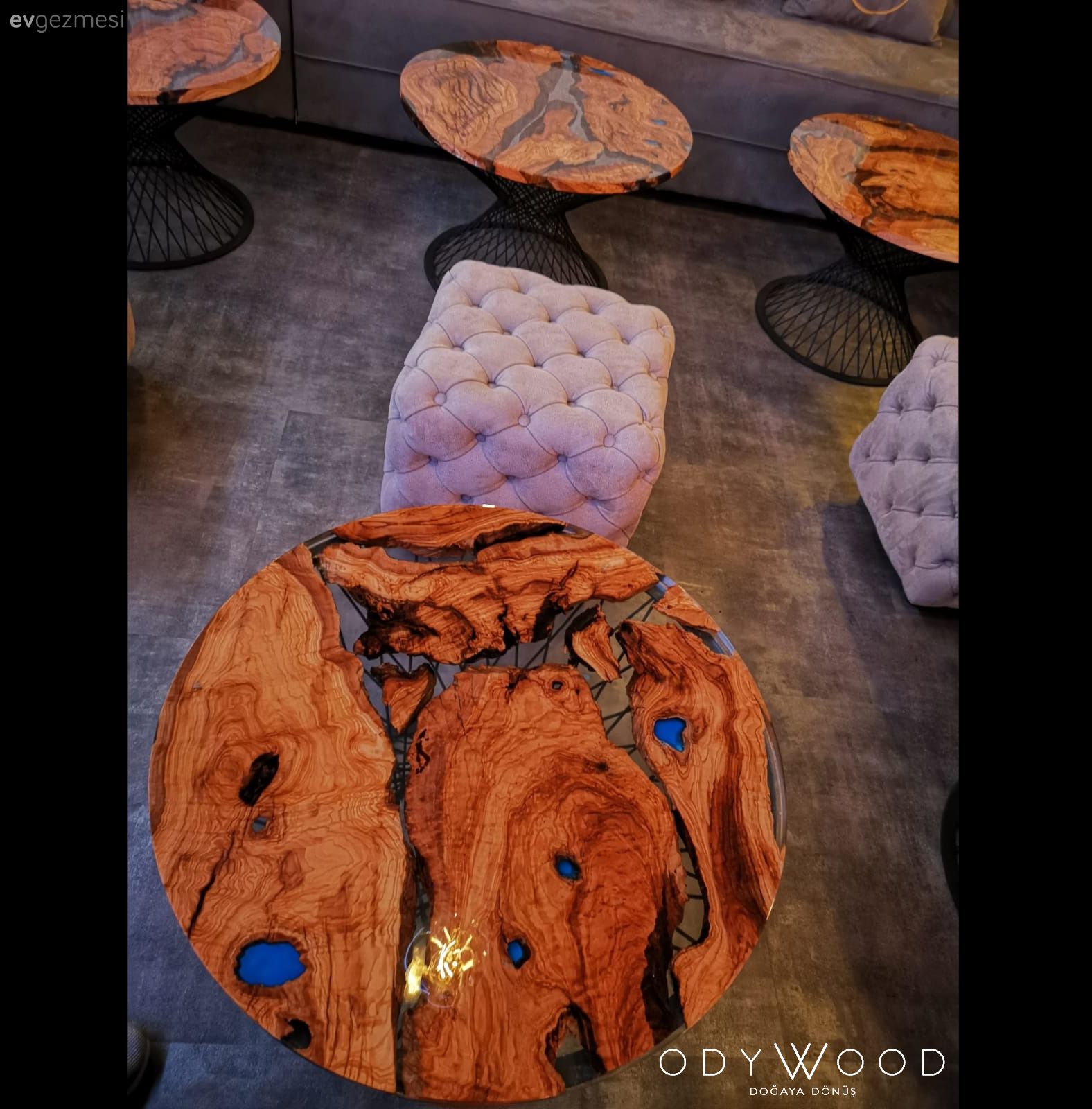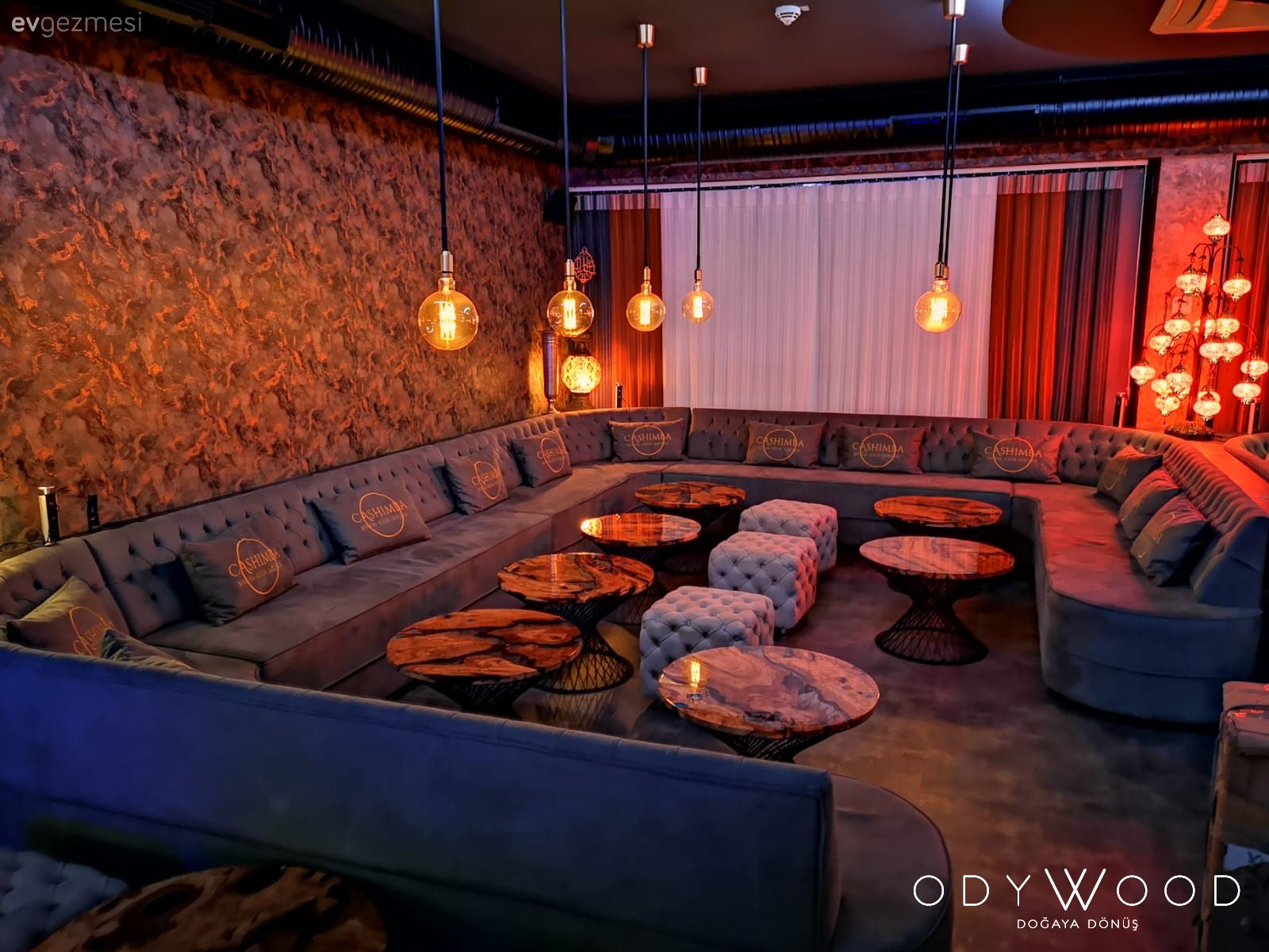 Almanya'nın Frankfurt şehrinde lüks dekorasyona sahip bir nargile kafe için ürettiğimiz epoksi sehpa ürünleri