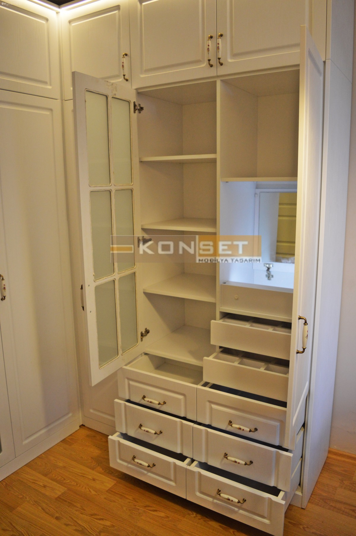 Mekana özel tasarlanmış gardırop çalışmamız.Kullanışlı ve fonksiyonel tasarımlarla hayatınızı kolaylaştırıyoruz.