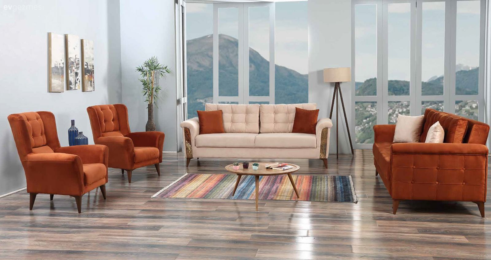 SADE VE ZAMANSIZ Kolay temizlenebilen kumaşlarla tasarlanan Buse oturma odası, ahşap dekorasyon öğeleri ile birleştiğinde çok daha dingin bir mekan yaratmanıza imkan sağlıyor. Buse özel tasarımı sayesinde rahatlığınız iki kat artıyor. Konforun en şık hali; Buse koltuk takımı. Buse; geniş oturumu, sade formu ve modern görünümü ile evlerde rahatlığın simgesi haline gelecek. Kapitone detayı ürünün sadeliğine renk katıyor.