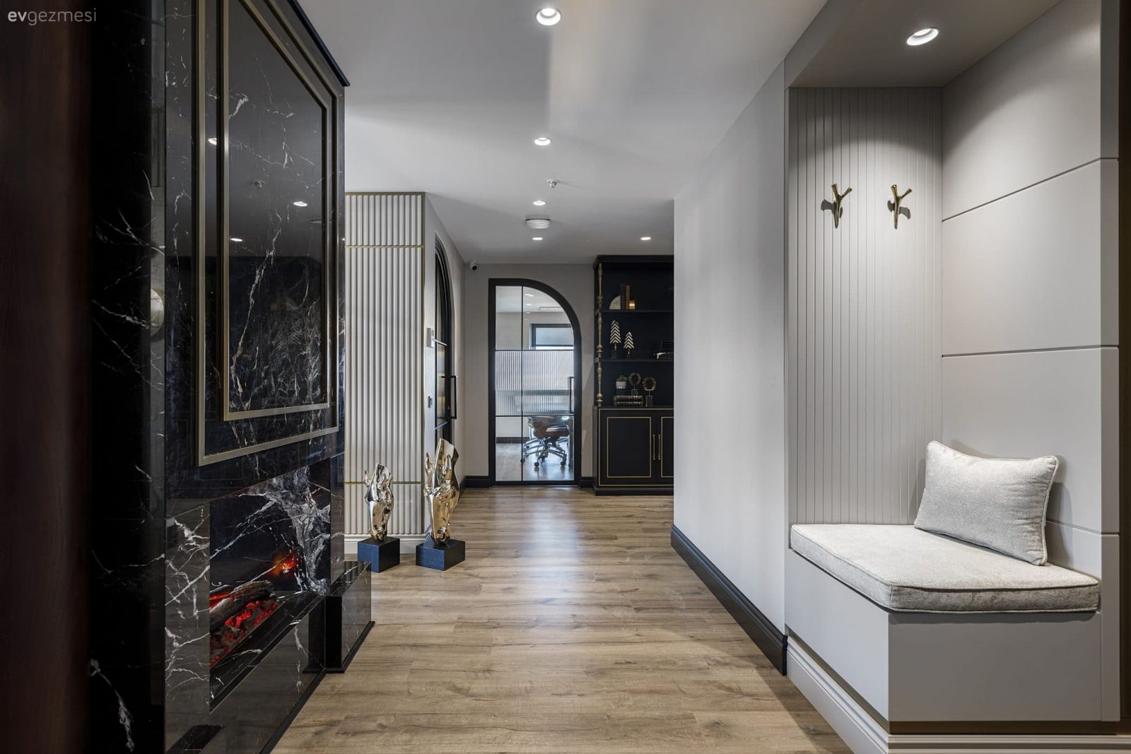 Beylikdüzü’nde 200 m²’ye sahip mekanda konfor ve lüksü müşteri ve çalışanlarına sonuna kadar hissettiren, her alanda dinamiği ve ritmi deneyimleyeceğiniz dış ticaret ofisi. Konsept çalışmasında lükslük ön plandayken çalışanların her alanı maksimum verimde kullanacağı, estetik ve işlevin bir bütün içerisinde birleştiği ofis projemizde modern çizgilere pirinç detaylar ekleyerek lüksü, ahşap detaylar ile sıcaklığı deyimletmeyi amaçladık.